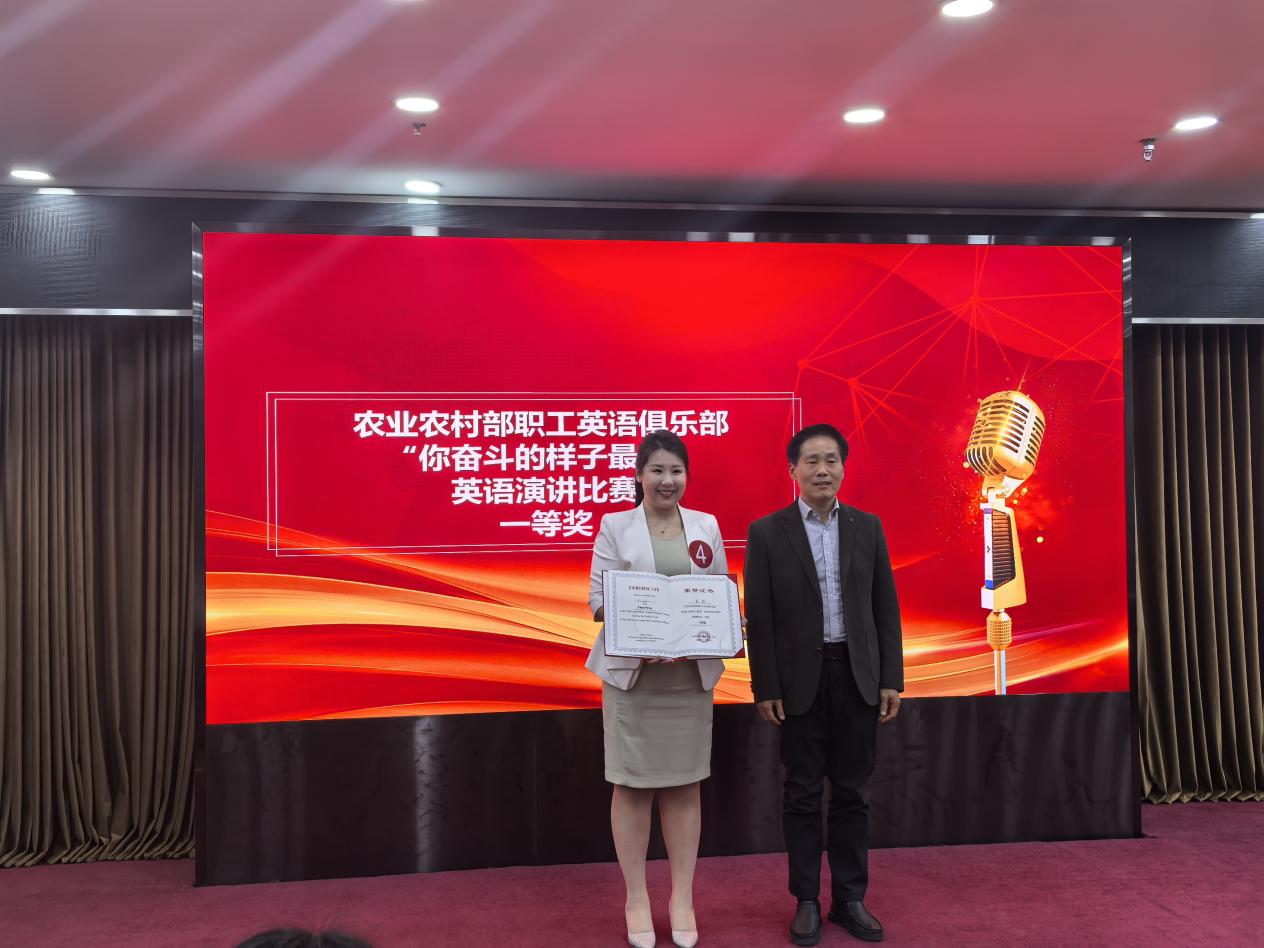 2025-11-14生物所吴彤荣获农业农村部职工英语俱乐部“你奋斗的样子最美”英语演讲比赛一等奖