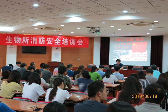 在全国第十八个安全生产月到来之际,6月19日生物所开展了以“防风险、除隐患、遏事故”为主题的消防安全培训,旨在进一步加强安全生产宣传力度,普及安全知识,有效防范和遏制重特大事故发生,为我所的持续发展提供坚强保障。