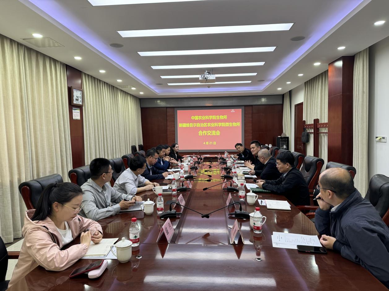 4月21日,新疆维吾尔自治区农业科学院微生物研究所冯耀祖所长一行到访生物所,双方就科技创新、学术合作及人才培养等进行座谈交流。生物所所长王登山主持会议。