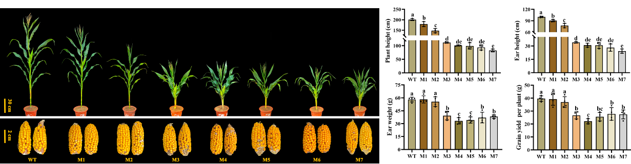 Recently, the researchers in Biotechnology Research Institute of Chinese Academy of Agriculture Sciences reported a strategy to continuous reduction of maize plant height through selective genome editing of the Br2 gene. The relevant results were published in Plant Biotechnology Journal, which will provide important technical support for improving maize density tolerance and lodging resistance.