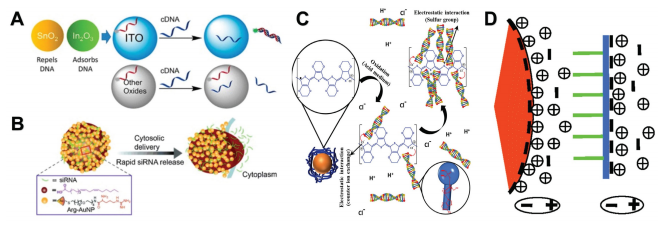 Nucleic acid analysis technology is the key to cracking the genetic information of life, which is very important for insight into disease diagnosis, drug development, food safety and environmental monitoring. The successful implementation of nucleic acid analysis depends on efficient and accurate nucleic acid sample purification technology. Traditional nucleic acid extraction methods are not only time-consuming and difficult to handle but also require skilled operators. Nanotechnology is gradually innovating nucleic acid extraction, simplifying the process and promoting biological science into a new era. The interaction modes between nanomaterials and nucleic acid molecules are diverse, including electrostatic interaction, covalent binding (direct covalent bonding, biotin-avidin system, disulfide bond connection, coordination bond, azide-alkyne click reaction, EDC/NHS coupling), π-π stacking effect, hydrogen bond formation, hydrophobic interaction and ion exchange. Among them, electrostatic interaction and covalent binding are particularly common and widely used. In addition, integrating nanomaterials into advanced monitoring systems such as microfluidic chips and biosensors provides strong support for the innovation of nucleic acid detection technology. The purpose of this paper is to comprehensively explain the basic principles and related molecular mechanisms of the interaction between nucleic acids and nanomaterials and to demonstrate their effectiveness in practical applications through specific examples for each interaction mode. Finally, we will review the latest progress of nanomaterial application in nucleic acid analysis, aiming to provide valuable references and inspirations for future research and development in this field.