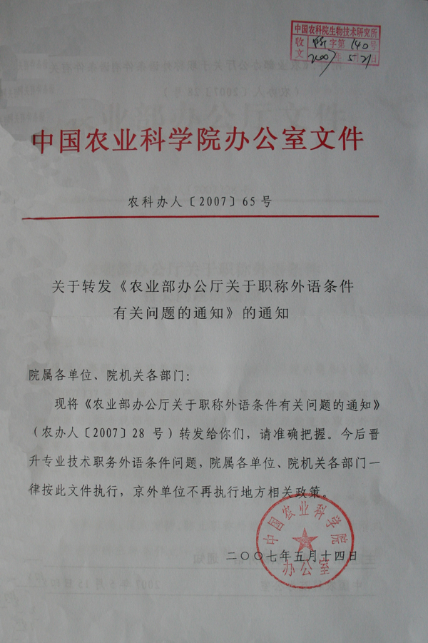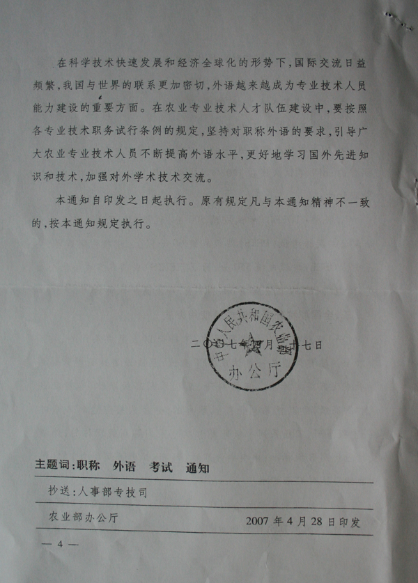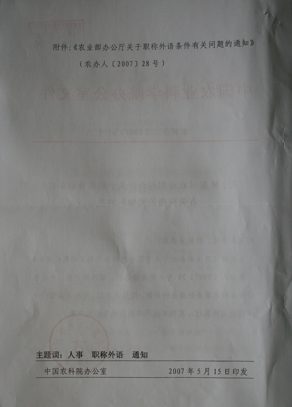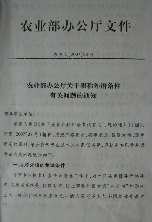 关于转发《农业部办公厅关于职称外语条件有关问题的通知》的通知