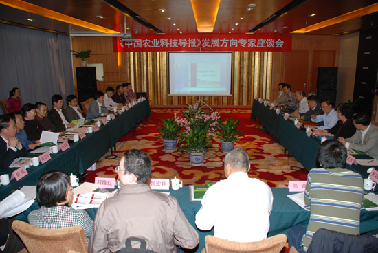 《中国农业科技导报》是中国农村技术开发中心主办、中国农业科学院生物技术研究所承办的农业综合性学术期刊,承担着报道国内农业科技前沿进展和农业科技创新成果,促进学术交流和信息沟通的重要责任。为了更好地应对国内外期刊的竞争,正确把握相关学科的热点方向,办出本刊的特色,2010年10月12日下午,生物技术研究所在湖北大厦举办了《中国农业科技导报》发展方向专家座谈会。科技部中国农村技术开发中心贾敬敦主任出席会议并讲话。中国农业科学院范云六院士、方智远院士,北京工商大学孙宝国院士以及《中国农业科技导报》在京的部分编委和其他优秀期刊的主编,中国农村技术开发中心农业高技术处葛毅强处长等30余人参加了会议,为《中国农业科技导报》的发展献计献策。刘旭院士主持了会议。