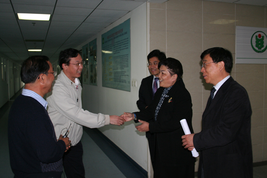 4月28日上午,中国民族贸易促进会执行会长刘延宁一行在中国农业科学院副院长王韧、院办公室主任刘继芳的陪同下到我所考察。 我所张春义副所长首先代表生物技术研究所对刘延宁会长的到来表示欢迎,随后,郭三堆研究员和陈茹梅研究员分别介绍了我所转基因抗虫棉的研究历程、产业推广和转植酸酶玉米研发等方面情况。刘延宁会长认真听取了科研人员的汇报,并就转基因抗虫棉和转植酸酶玉米产业化等问题与科研人员进行了交流。当得知我所自主品牌转基因抗虫棉仅用10余年时间就打破国外转基因棉品种垄断,成功实现国内市场占有率的逆转,并且走出国门为国家创造了巨大经济和社会效益时,刘延东会长频频点头称赞。考察期间,刘延宁会长还拜访了我所范云六院士并进行了亲切交谈。刘延宁高度赞赏范云六院士专心科研的奉献精神和我所科研人员的自主创新精神,对我所在转基因生物技术领域取得的拥有自主知识产权、具有世界领先水平重大成果给予了高度评价。 刘延宁会长表示,在当今世界科技和经济竞争日趋激烈的形势下,生物技术研究所坚持自主创新,为提高我国农业生物技术国际竞争力、促进农民增收和农业可持续发展做出了重大贡献,希望我所再接再厉,在农业科技创新领域取得新的成绩。