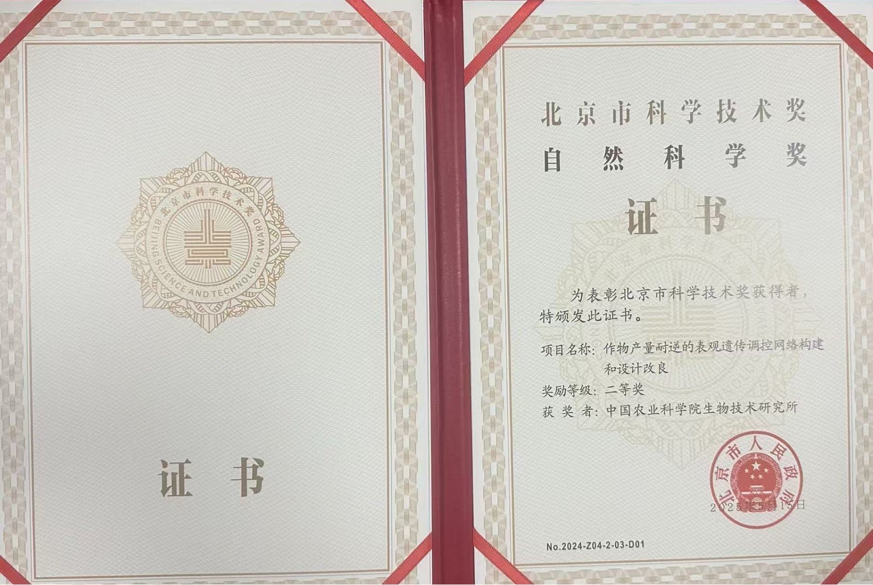 11月7日,北京市科学技术奖励大会召开,发布2025年度北京市科学技术奖授奖清单,中国农业科学院生物技术研究所谷晓峰研究员,普莉研究员,田健研究员,liang Z 研究员联合北京大学何跃辉教授及西南大学张勇教授完成的“作物产量耐逆的表观遗传调控网络构建和设计改良”项目荣获得北京市自然科学奖二等奖。