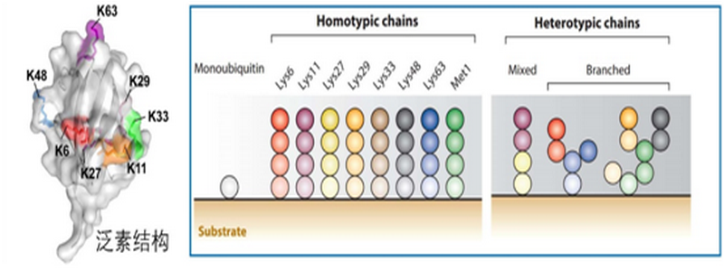 图1. 泛素密码:多种多样的泛素链赋予底物蛋白的不同命运.