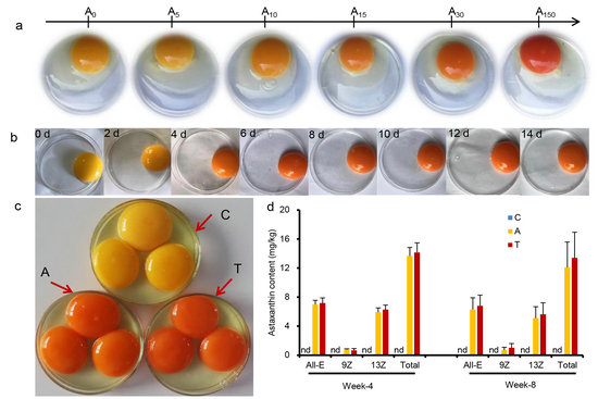 图2 不同来源虾青素的蛋鸡饲喂试验